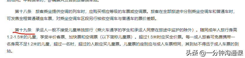 现在执行的标准是在1997年发布,目前仍在使用的《铁路旅客运输规程》,其第十九条中注明: