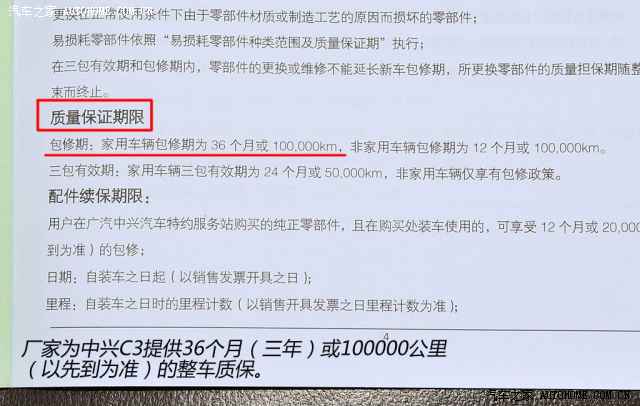 中兴C3官方质保期为三年或100000公里(以先到者为准) | |||||||||