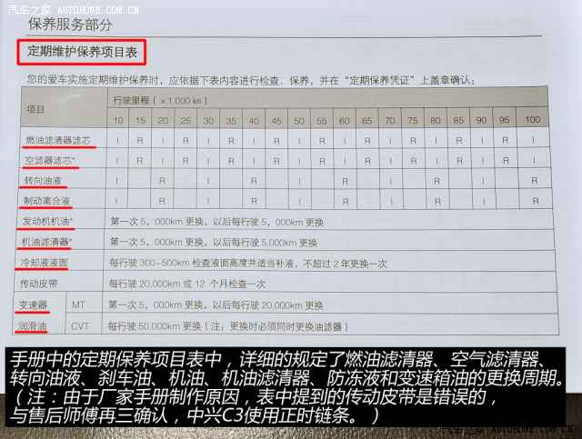 中兴 C3官方保养周期表 (4S店保养建议) | ||||||||||
