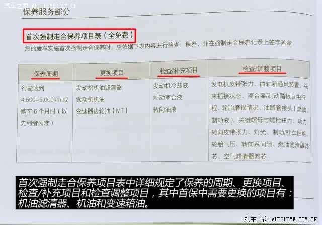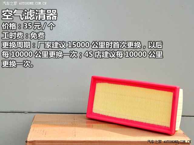 从官方保养表格中我们可以看到,机油和机油滤清器是做完首保之后,每5000公里更换一次;空气滤清器和汽油滤清器在15000公里时首次更换,以后每10000公里更换一次;转向助力油为每20000公里更换一次;变速箱油首保的时候需要更换,以后每20000公里更换一次;刹车油和火花塞的更换周期同样为每20000公里/次;防冻液的更换周期要长一些,为40000公里/次。