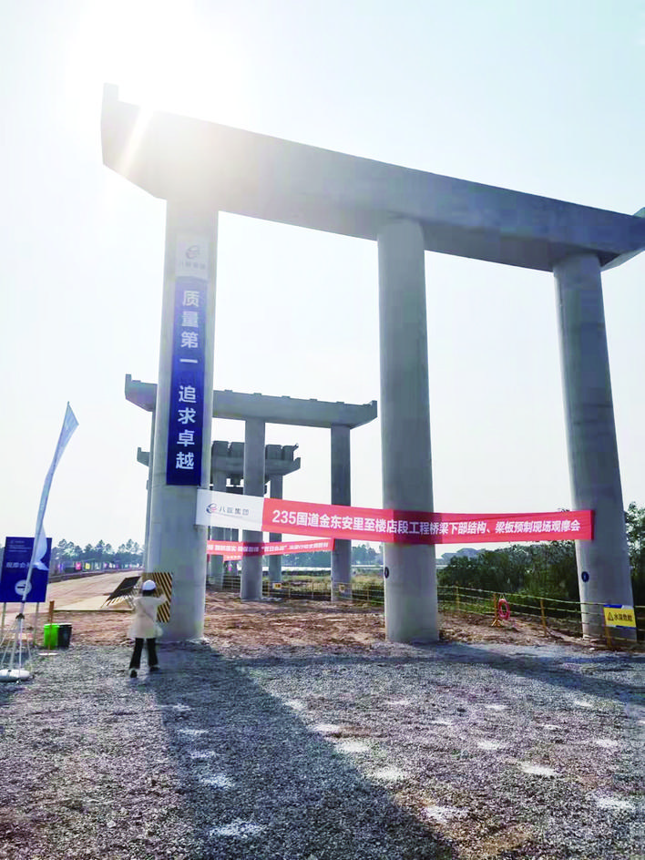 10月30日,虽然是周末,但在金义中央大道三个标段内,机器轰鸣,梁板架设、路基铺设、桥梁下部结构施工、梁板预制等各项工作有条不紊地推进——市交投集团组织的重大项目采风