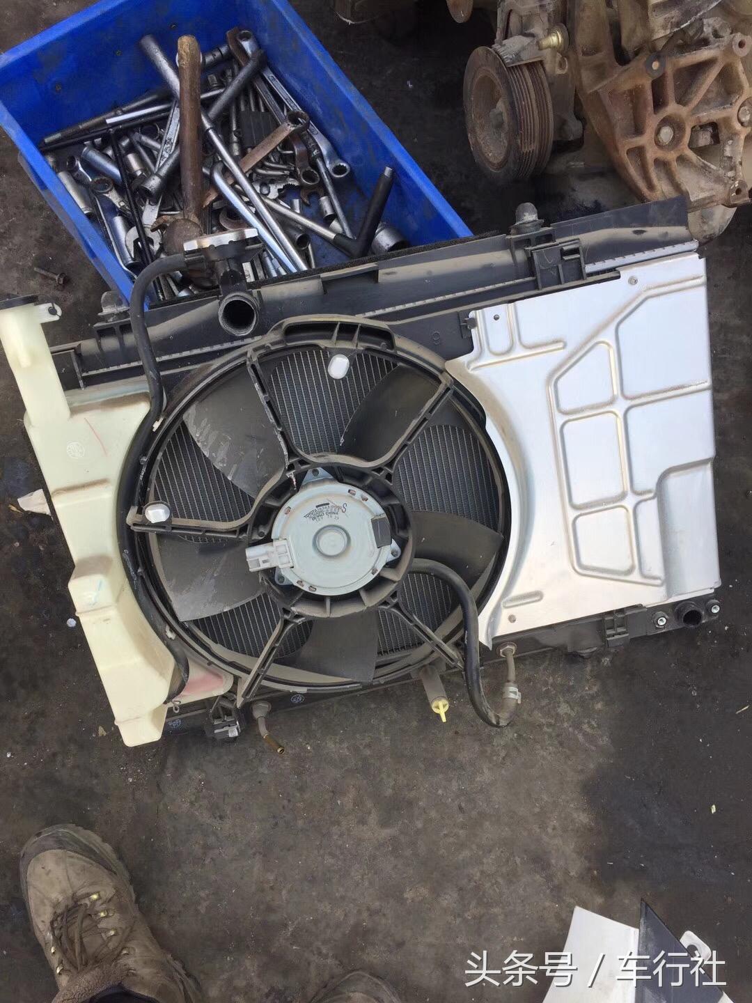 这个东西也许有些人知道,有些不知道。电子扇总成,这套东西也是事故车上经常要换的,由水箱、冷凝器、电子扇及马达组成。一个车头事故,稍微力大一点就必换无疑。水箱¥1085、冷凝器¥3400,电子扇和马达¥800。这些都是4S价,拆车用不了这价格。
