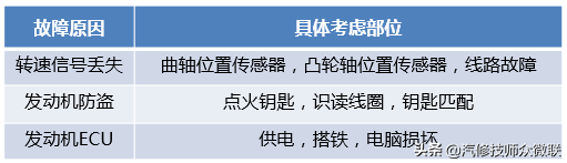 如果发动机的控制单元没有接收到转速信号,发动机不能启动或在运行中立即停止运转。