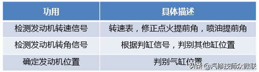 曲轴位置传感器的主要功能是:检测发动机的转速及转角,确定曲轴的具体位置,控制发动机点火及喷油时刻。具体如下: