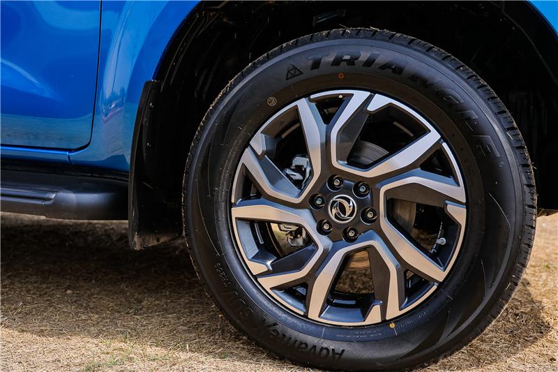 车身侧面通过流线型贯穿式腰线的设计增加了整车的时尚感,看起来更像是一款乘用车型,车辆质感也得到了提升。宽大的亮色镀铬轮毂造型更为炫酷,强化了整车运动气息,车尾后保险杠采用实用性极强的T型设计,不仅营造出简约大气的视觉效果,同时也更方便用户上下货箱,增加了整车使用便利性。 新车采用尺寸为255/70R16或255/60R18两种尺寸的轮胎,货箱部分全系均喷涂了货箱宝,并安装了带有外绳勾系固点的防滚架,货箱内部也有绳勾系固点,相当实用。