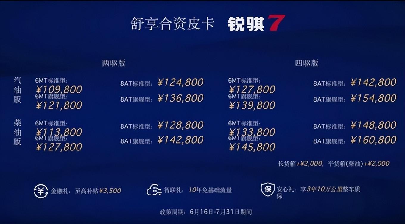锐骐7正式上市,新车售价10.98-16.48万元,6月16日-7月31日期间购车还可享受金融礼、智联礼、安心礼等多重优惠。锐