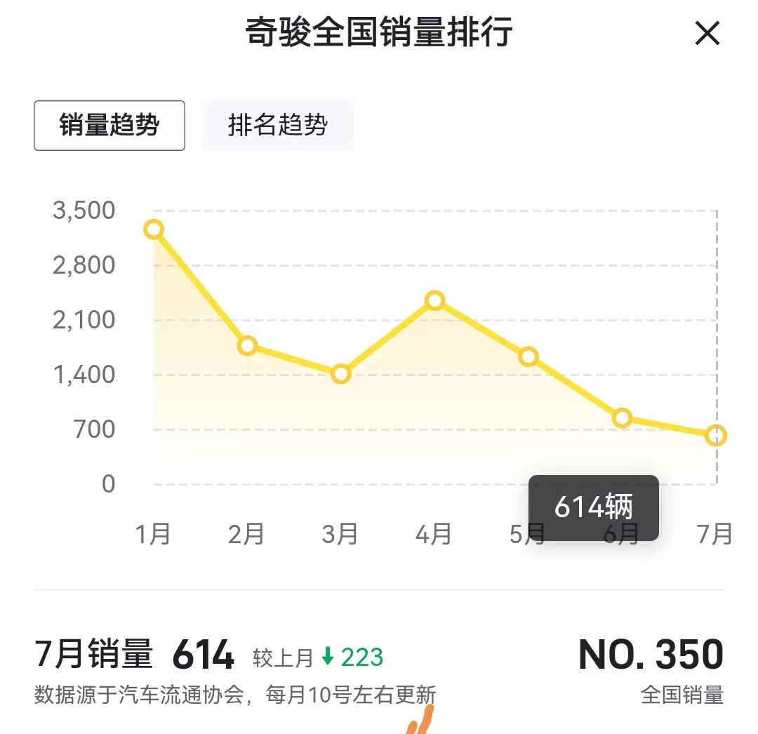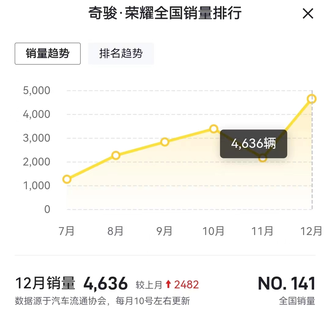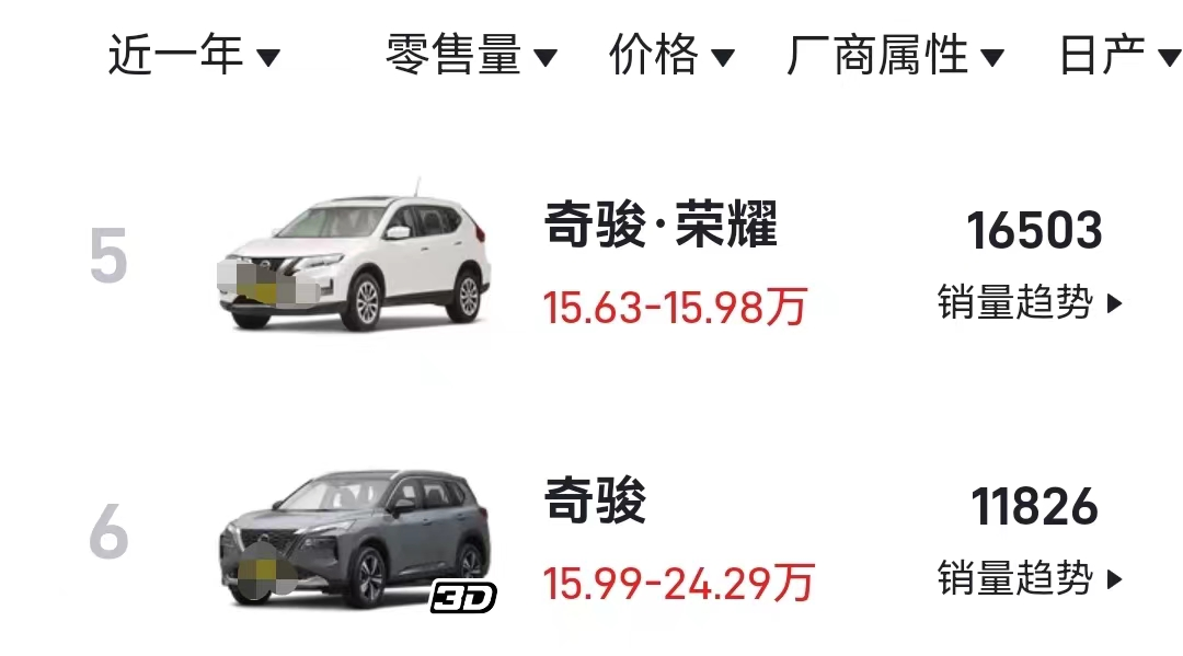 另外有一万多人竟然还买了奇骏荣耀,这就有点离谱了,价格不低而且都过时的产品了,还有人买。买奇骏荣耀的人你但凡多看国产车一眼都不会花这么多钱买一辆奇骏荣耀吧!