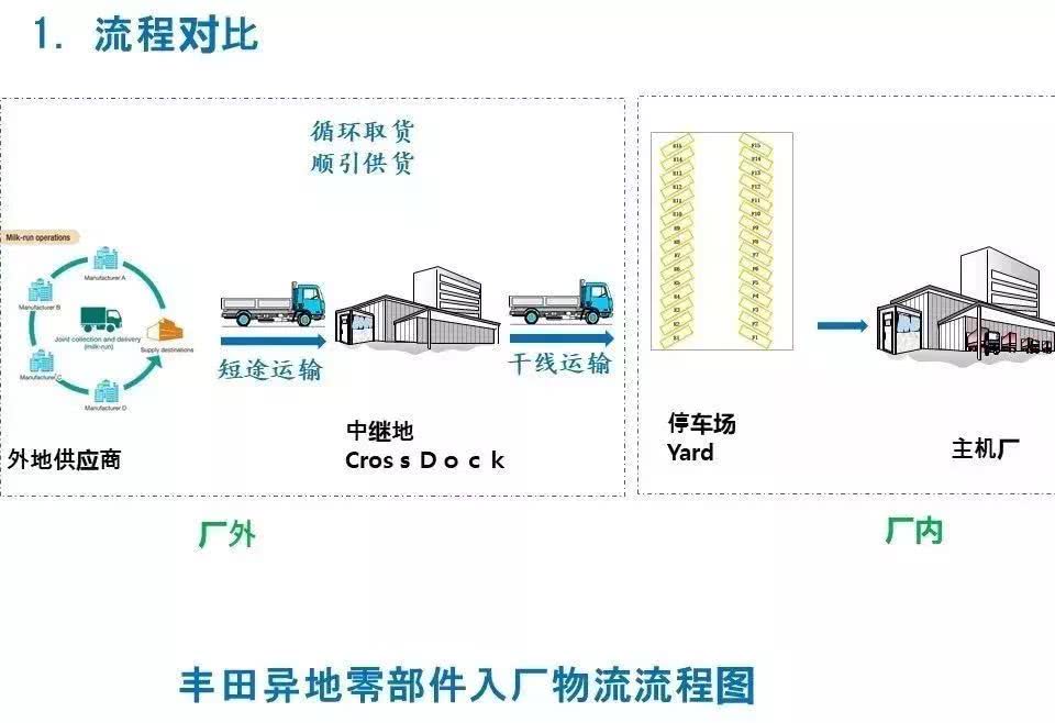对外地零部件,大众和丰田都是通过指定物流商对零件进行短途循环取货后,进入中继地,再换干线运输卡车运输。