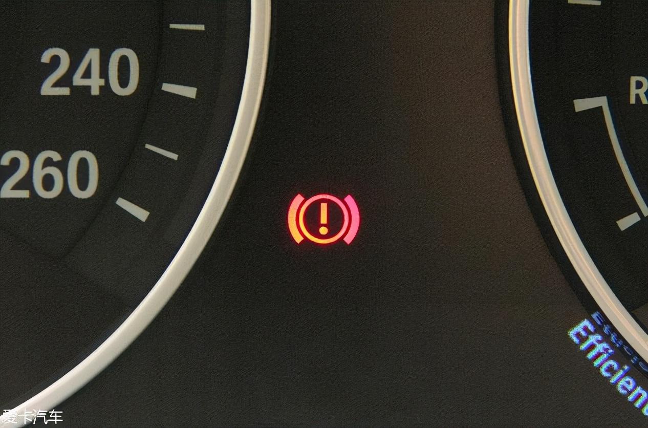 如果说你的刹车片磨完了,或者是刹车油不够了,那么就会出现这个故障灯。大家要注意啊,这个灯亮了之后先要检查一下刹车油够不够。