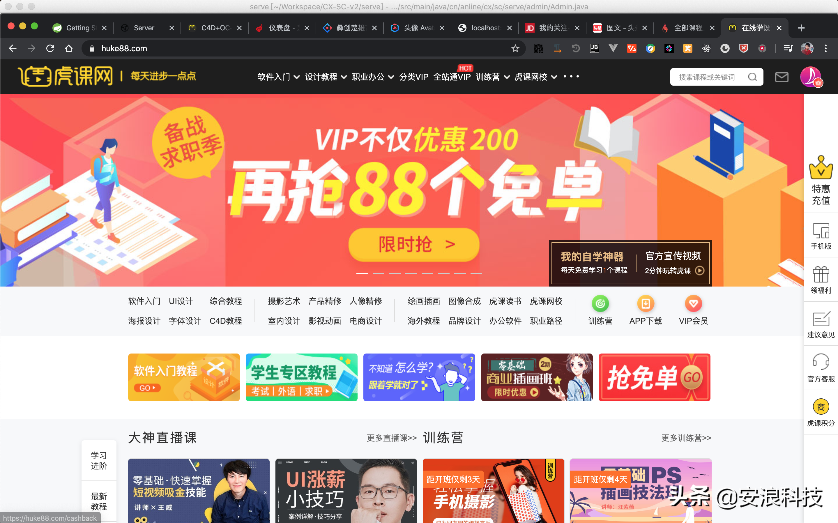 收费也合理,每天可以免费看一节课,也可以包月、包年、甚至永久会员。除了直播训练营,VIP可以包场看。缺点的话实战课较少,视频清晰度较低,不是真1080P。