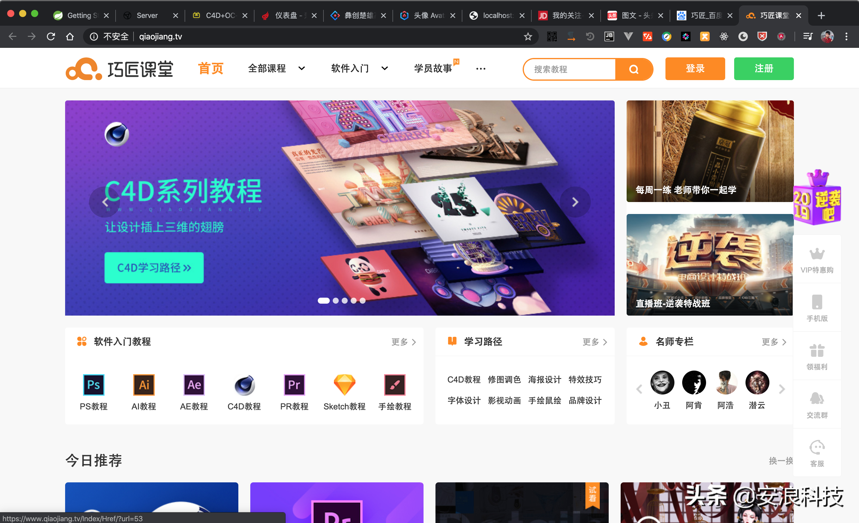 成立较早、但是近年来免费课堂越来越少,需要收费购买课程。如果资金允许或者急需提高自己的设计师、程序员值得一看。