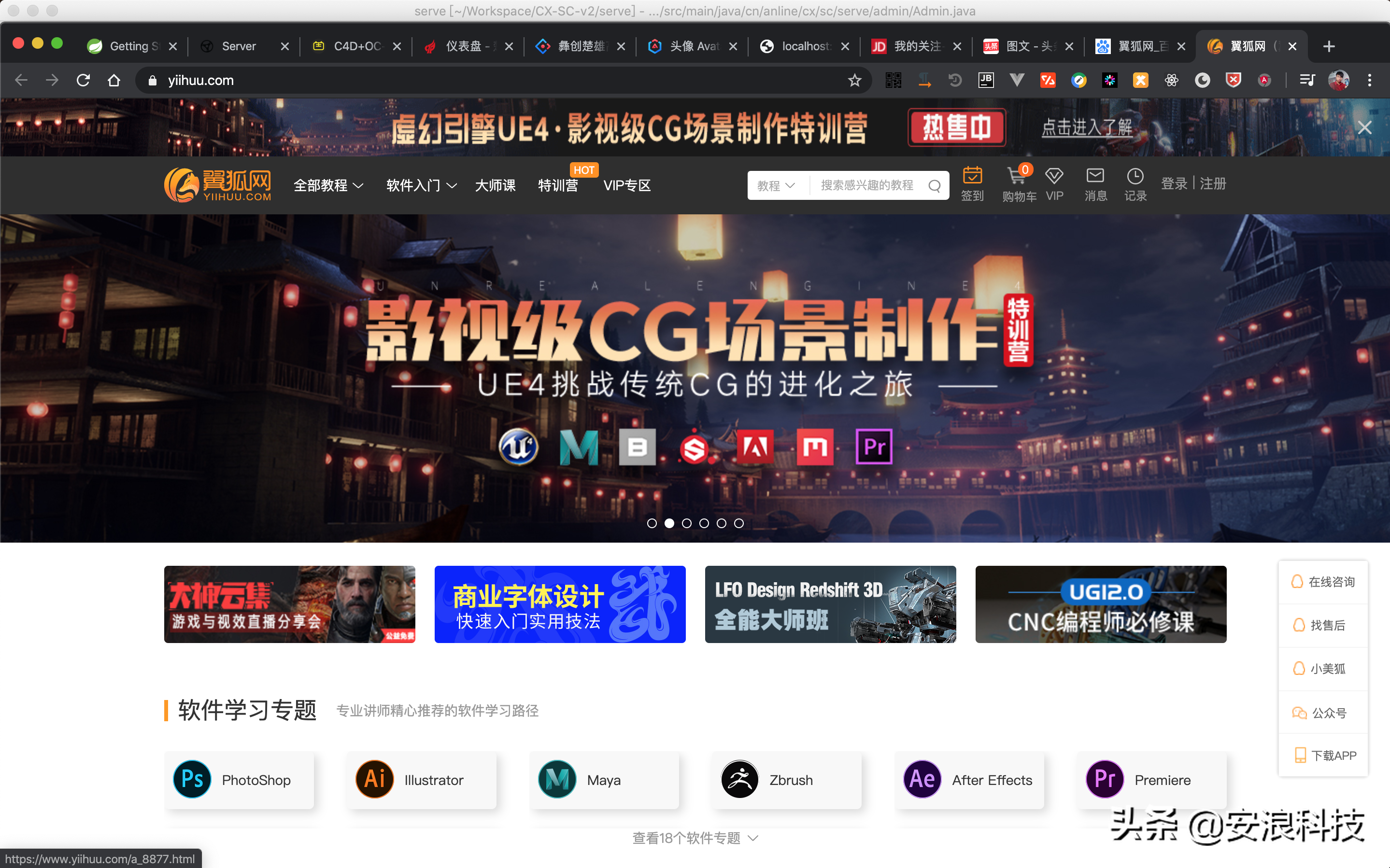 课程内容比较乱,有些是外网搬运。但是课程内容其实有些是其它地方达不到的水平,非常接近大师级的讲课,是少有的接近实战案例的特效制作教程平台。但是收费也是非常高,就算是开了VIP会员,购买一套课程也是只能打个折。有入门级的课程,有大师级的课程。