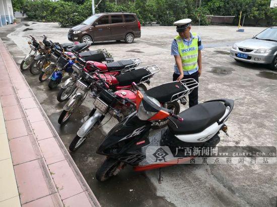 广西新闻网钦州3月11日讯(通讯员 覃成朝 韦斌)3月9日,钦州市灵山县公安局交管大队武利中队开展未成年人涉摩交通违法专项整治行动,行动中共查获涉嫌非法改装的摩托车8辆。民警发现,为了追求个性化,这8辆摩托车都将后视镜拆除,车身也涉嫌多处非法改装。