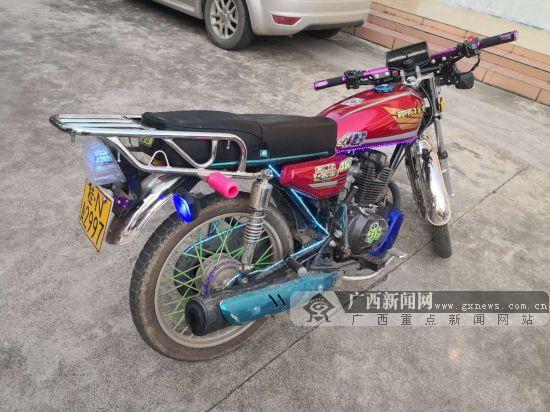 摩托车涉嫌多处非法改装并使用假牌。钦州交警支队供图