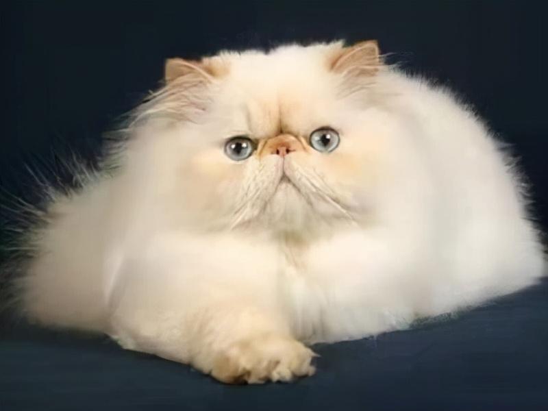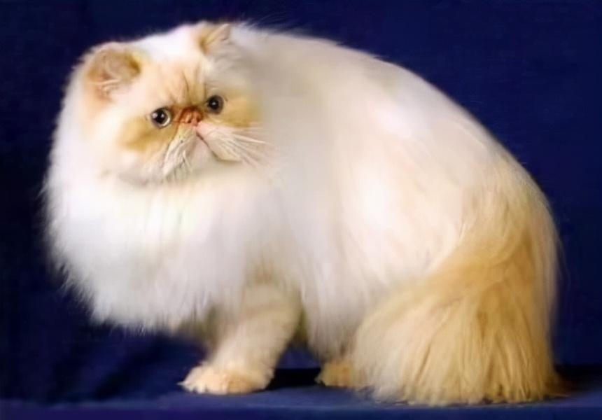 个头宽大,形状是圆形的;同时它也有圆的前额和下颚,这是波斯猫的标准。