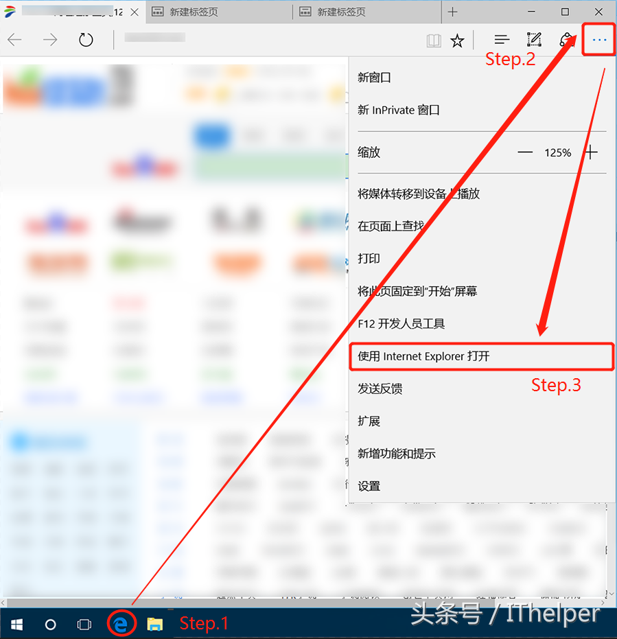 一、在任务栏上找到Edge,打开后就可以通过它调用IE浏览啦;