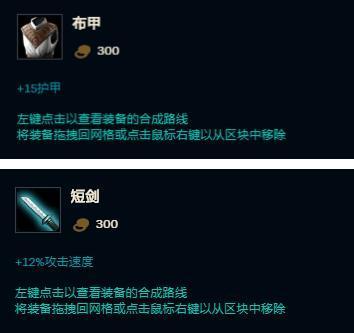 一般来说,如果是构成大件装备的小件,那么可能只会提供单一的属性,比如布甲提供的属性就是15点护甲,短剑提供的就是12%的攻击速度。