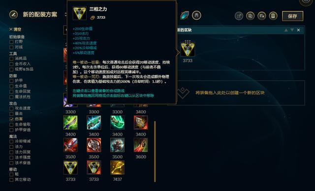 在大家的印象之中,属性最多的装备是什么呢?是三相之力。3733的价格,提供了6种属性,除了没有双抗之外,大多数有利于输出的属性都可以在三相之力上面找到,说它是一件终极装备没有任何问题。一旦上单或者ADC出了这件装备,立马产生质变。