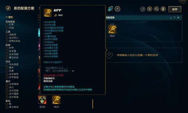 这件装备的名字叫金铲铲,无论是外形还是名字,想必大家都十分熟悉。因为在云顶之弈中,金铲铲是一件相当万能的装备,可以帮助玩家提高英雄人口。而在正常的游戏中,金铲铲却可以提高多达13项属性,比三相之力更加离谱。