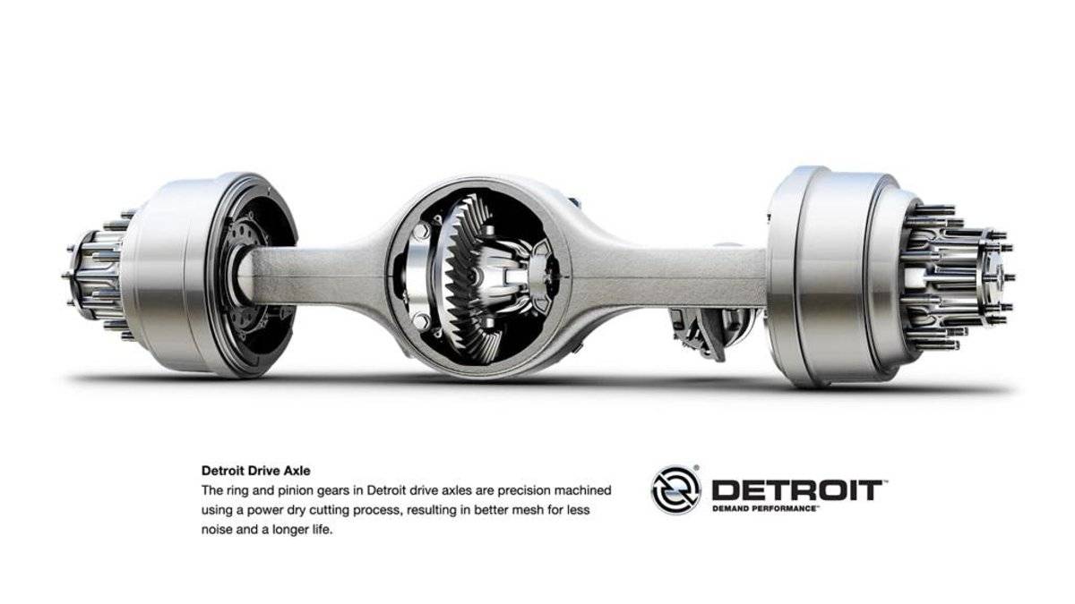 而Detroit ® Axle车桥产品拥有创新的滚针轴承设计,6X4牵引车最小速比可做到2.16,串联式后桥还可选ALM车桥润滑管理系统,可竹筒调节唤醒齿轮和摩擦损失,优化小齿轮轴承区域的油位。配合专为DD系列发动机所开发的DT12 AMT变速箱,可通过现今的电子控制系统,在卡友处于空挡滑行、空车启动的状态下,让发动机的转速仅为500rpm,优化燃油经济性。