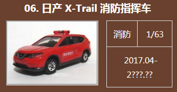 2017年4月,就在大家以为NO.1的第六位家族成员还会是巴士的时候,Tomica却一反常态出了一辆日产 X-Trail 消防指挥车,打破了巴士车长达43年的“统治”地位
