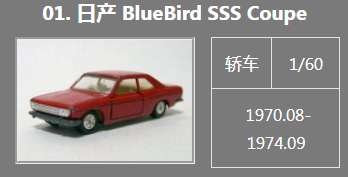 Tomica在1970月8月发售的第一辆车是日产 BlueBird SSS Coupe