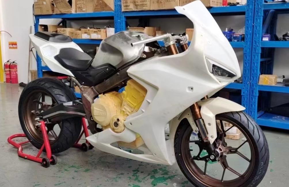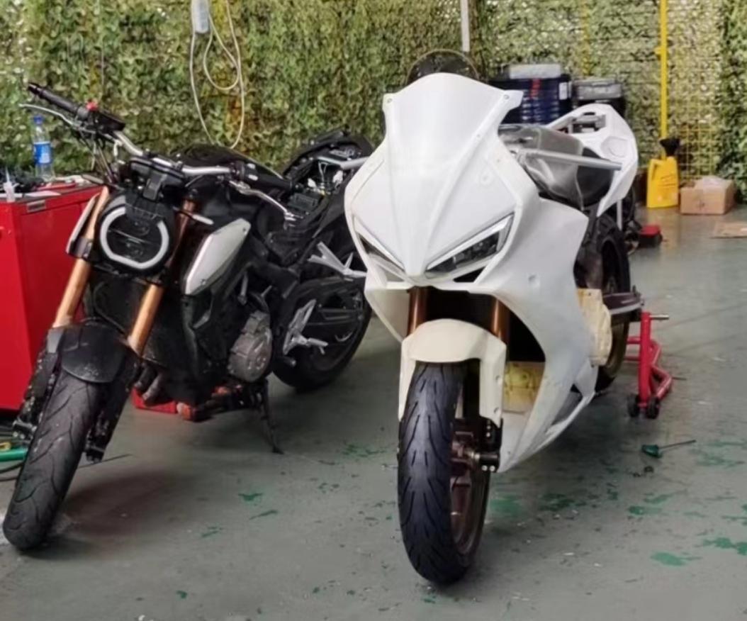 据笔者了解,嘉爵此次推出的两款四缸摩托车,一款是复古运动街车,名为CN800·臻,外观参考本田CB650R。另一款是仿赛摩托车,名为CNR800·睿,外观参考本田CBR650R。研发上,嘉爵先着手的复古街车,笔者之前的文章中已经有相关爆料,整体设计非常不错,视觉上的肌肉感非常浓郁。而在近期,嘉爵的仿赛摩托车CNR800·睿也到了尾声,相关模具都已经有了半成品,测试完成、合格之后就可以量产,进而面世。