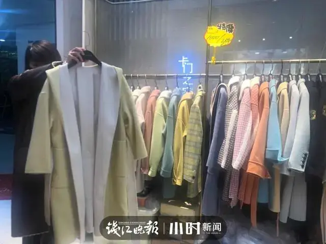 在中纺中心市场一楼,A区73一75的老板娘手上还有2000件冬款,比如双面呢大衣,平时批发价都要五六百以上,她正在以1000块钱三件的价格清货。她说,清完就打算直接上夏装了。
