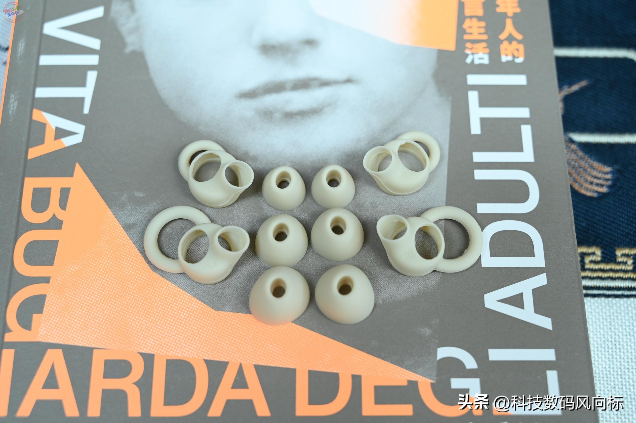 细节上,这款耳机单只重量只有2g,厚度不过0.7cm,耳机和充电仓的表面都是采用了一种亲肤材质,手感十分细腻,戴上之后感觉特别舒服,而且基本没什么感觉,配件里还有额外的耳撑,可以找到非常合适的型号。