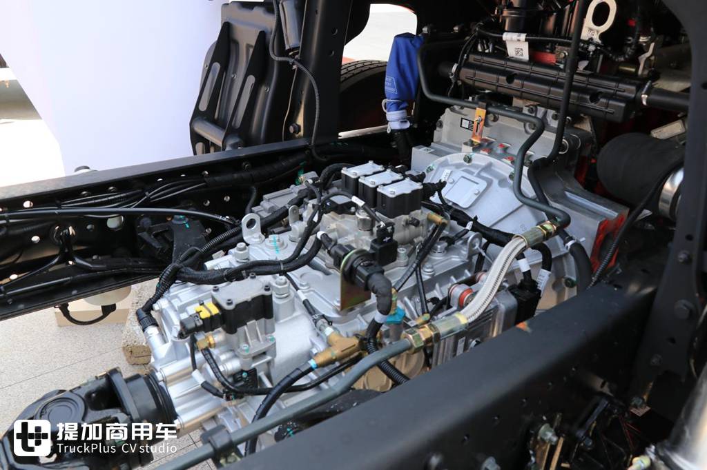大黄蜂上使用的福田康明斯F4.5发动机型号为ISF4.5NS6B220,迎合现国六排放标准,最大220马力与820N.m的动力输出表现也能满足总重18吨的需求,而且大排量的直列四缸在标载的环境下会发挥出较好的燃油经济性。