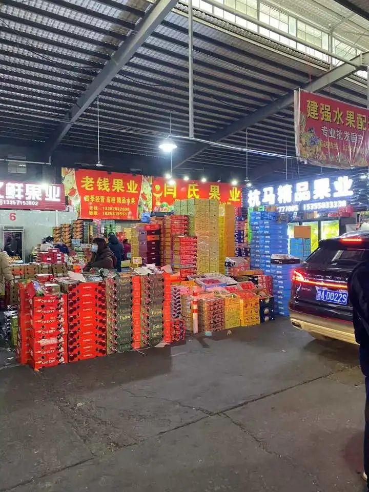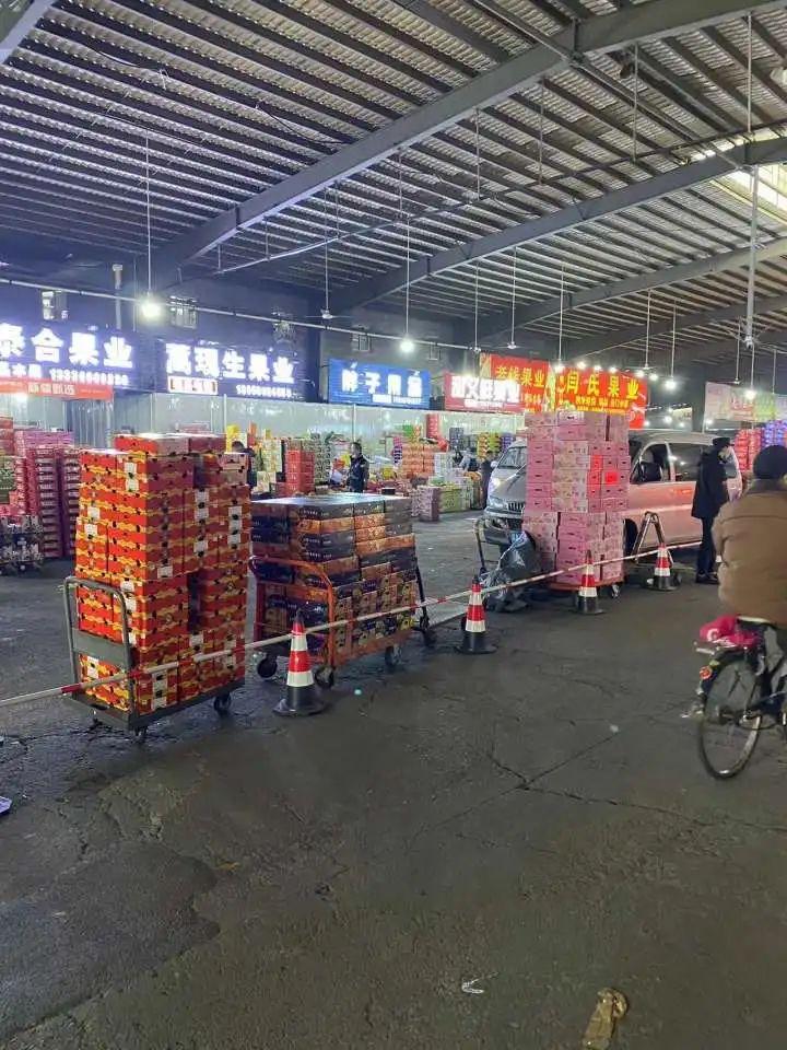 走进市场,就能看见大大小小装满了水果的箱子摆放在各家店门前,走近就能闻到果香。有不少市民前来选购,不时有车驶入,整个市场瞧着就挺热闹。