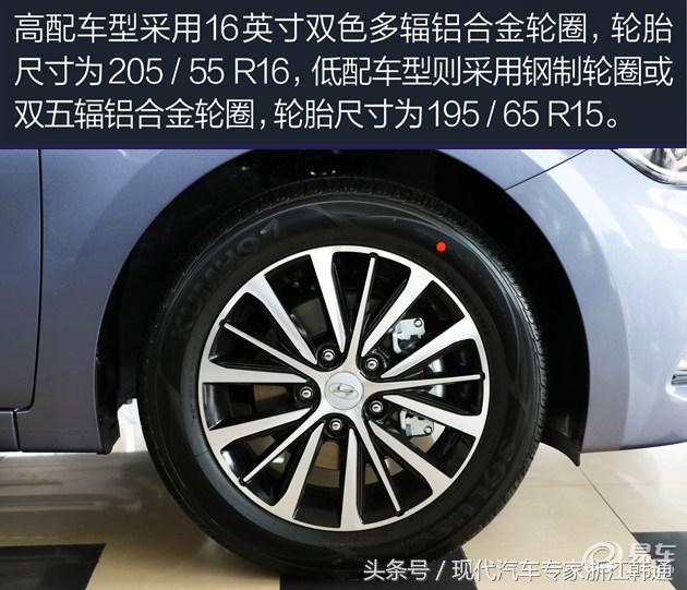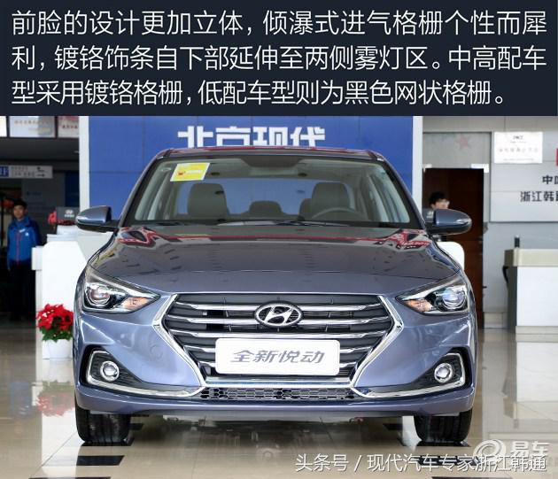 全新悦动采用全新家族造型,前脸的六边形格栅与保险杠格栅形成了一个倒扣宝瓶造型。大灯锐利,雾灯为圆形。轮圈共有3种样式可供选择,轮胎规格为195/65 R15和205/55 R16。