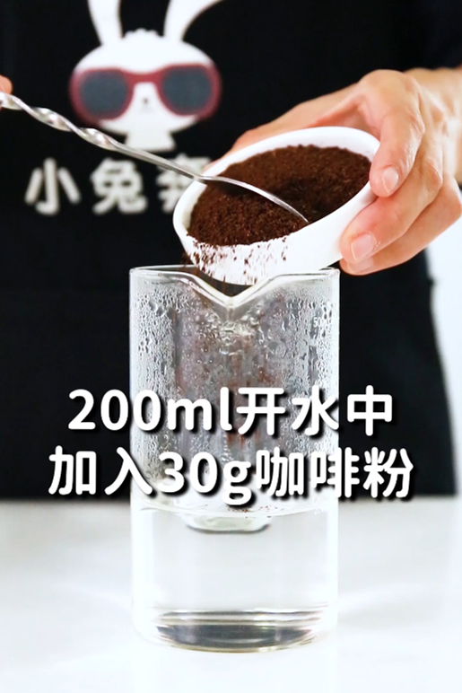 第1步:先在200ml开水中加入30g咖啡粉,用吧更勺搅拌均匀