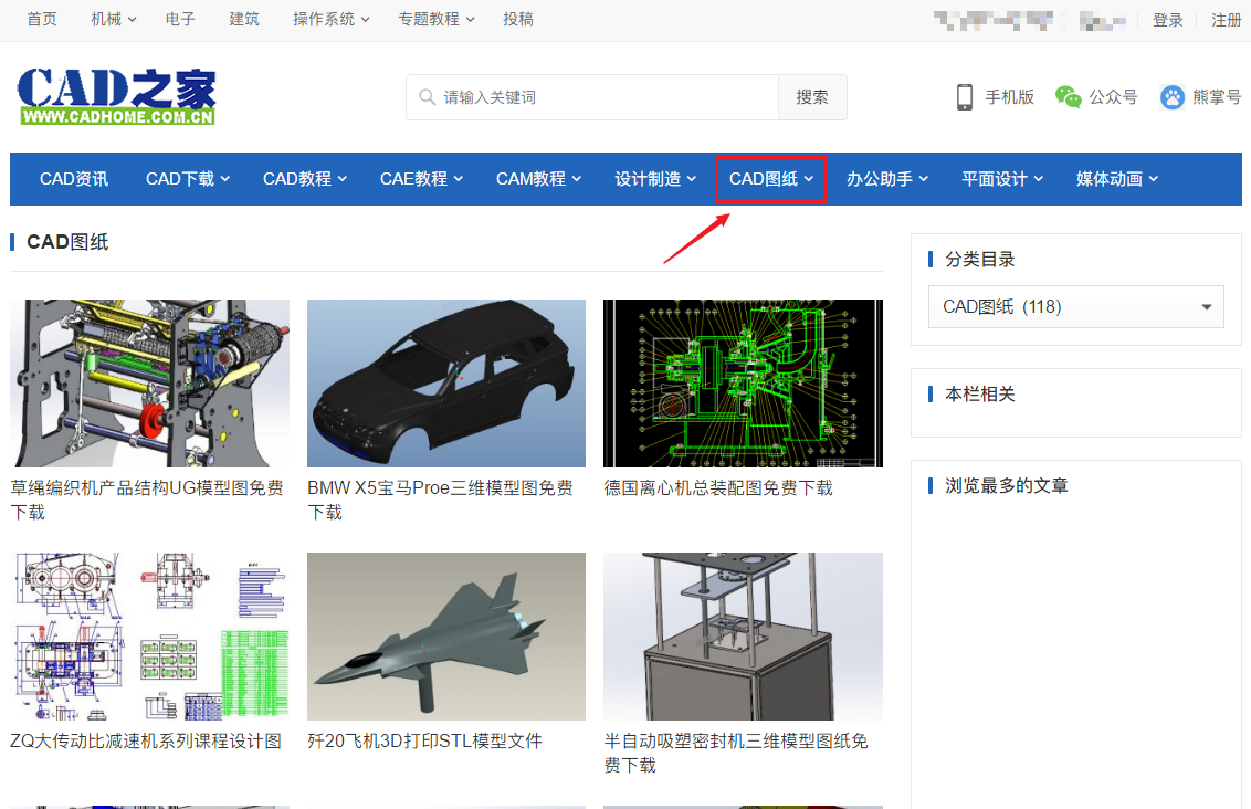 它将图纸分为五类:三维图纸、二维图纸、模具图纸、设备图纸、标准图库,无需登录即可下载。先找到想要的那个资源,进入详情页后点击页末的【去下载】即可。
