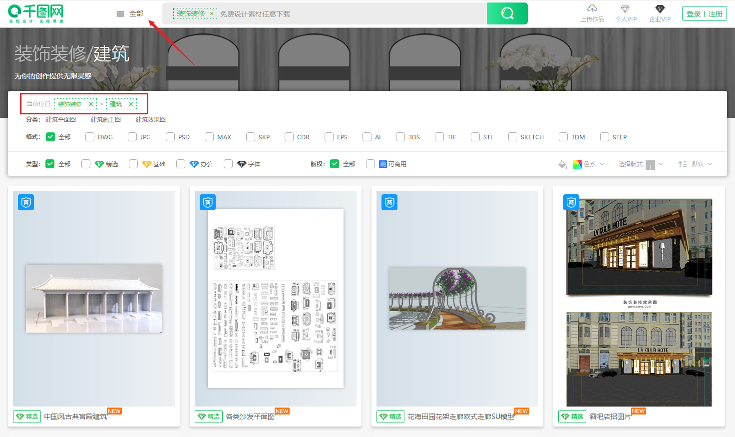 千图网的CAD图库在这里【建筑设计】。