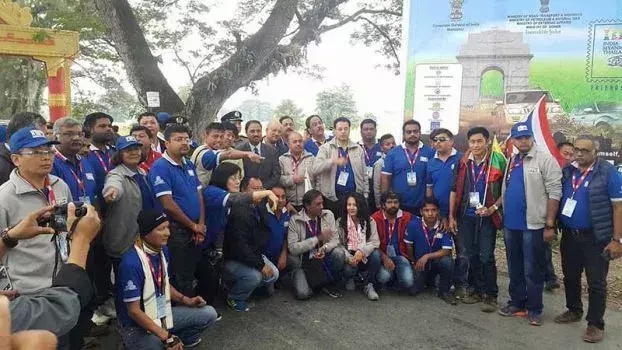 据悉,此次活动的全称为“缅甸-印度-泰国三国旅游业发展及友谊越野车竞赛”,有印度籍人士47人及1名美籍人士参加,共20辆车。车队入境缅甸后,得到了各界的热烈欢迎,纷纷前来喝彩助威、拍照合影。