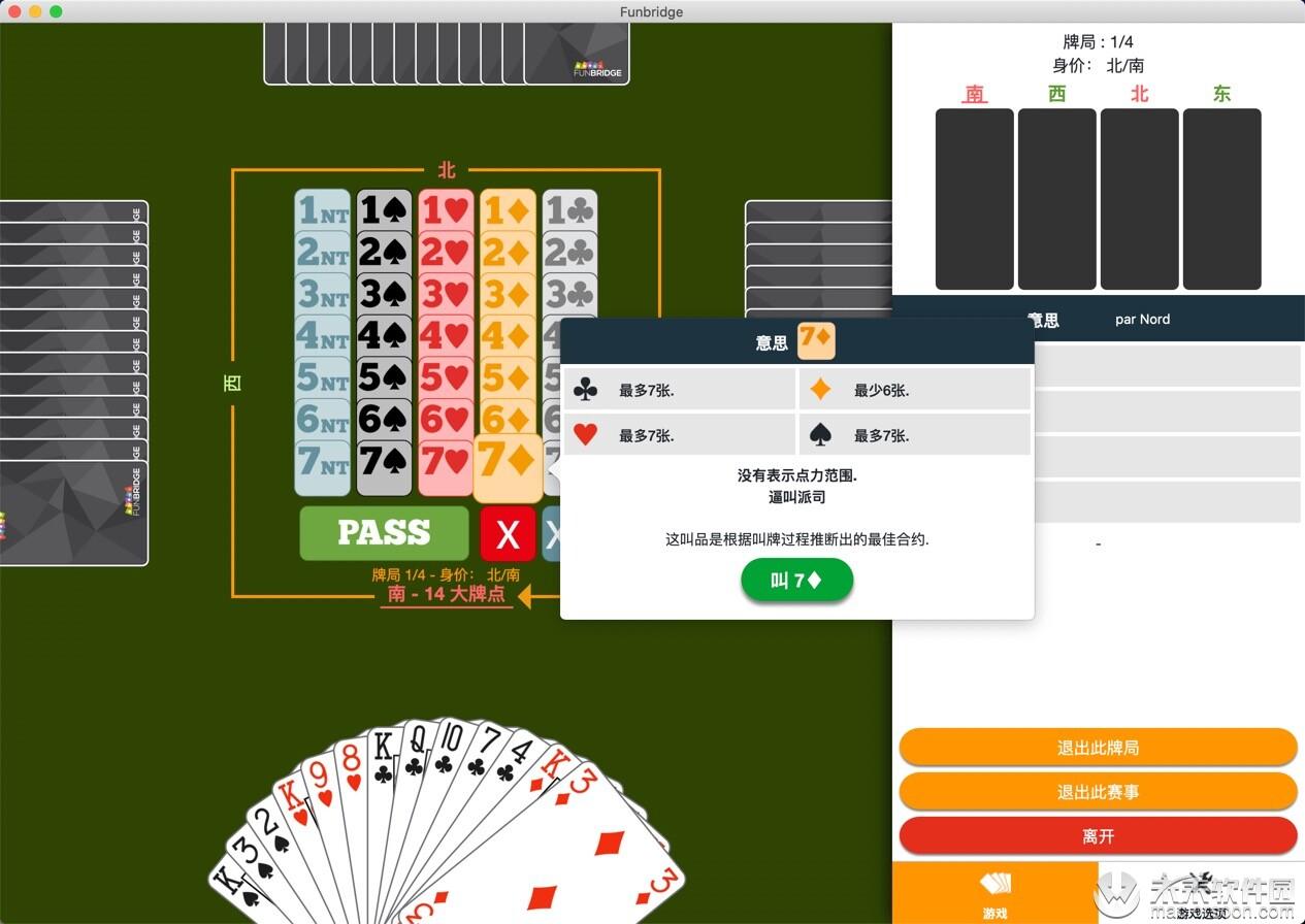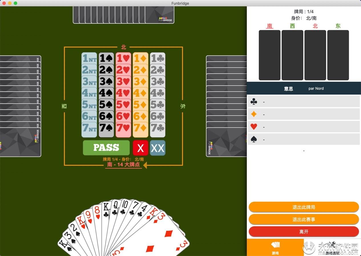 是一款运行在Mac平台上的棋牌游戏,你可以通过桥牌俱乐部 Mac版和各地的玩家一起玩桥牌,不同难度的游戏模式自由选择,无需等待,桥牌俱乐