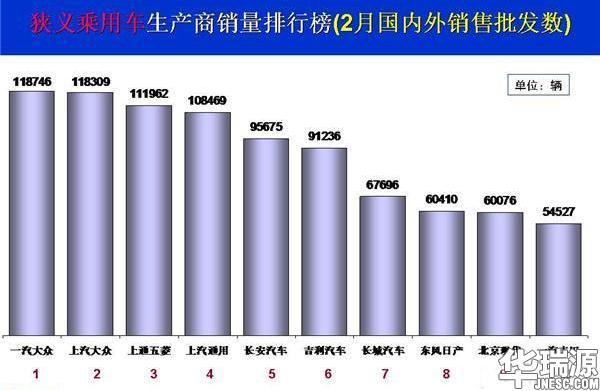 第二名:上汽大众 2月狭义乘用车批发销量:118,309辆