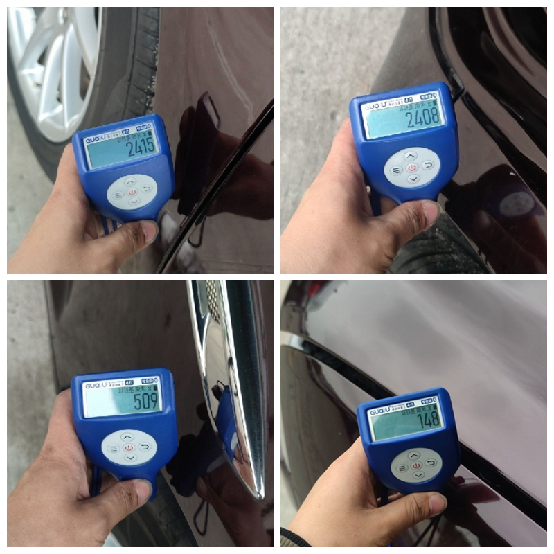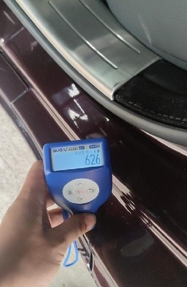 往后看车身漆面,一圈测下来,全车除了左前门以及车顶之外,其它面均做过钣金喷漆,个别位置都快爆表了,有点儿乌东战损车那个味道了!看来前车主运气不是很好呀!不过好在都只是一般修复,没有换件!