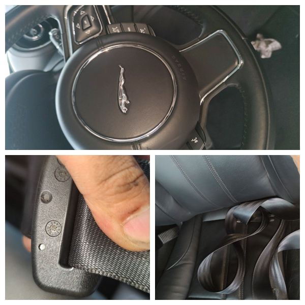 主驾驶气囊和安全带跟着行人保护装置一起工作了,看螺丝都是拆装过的!