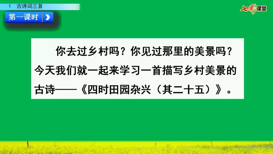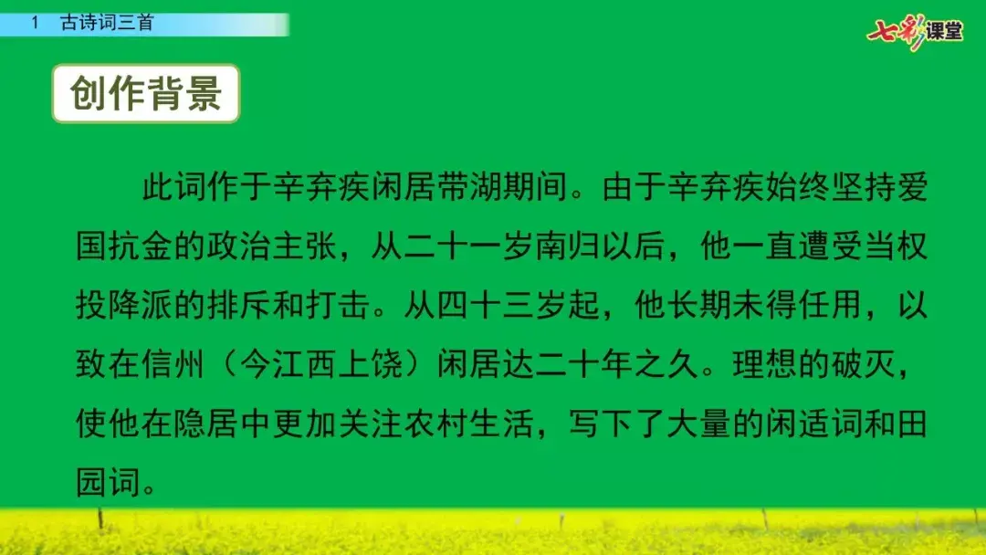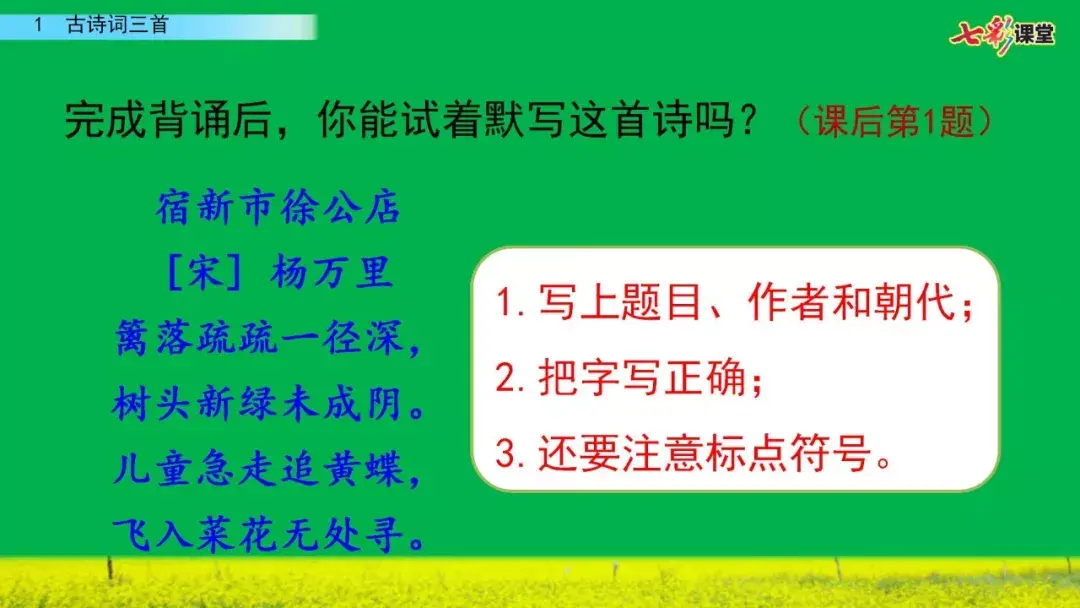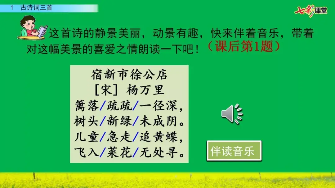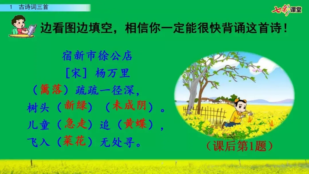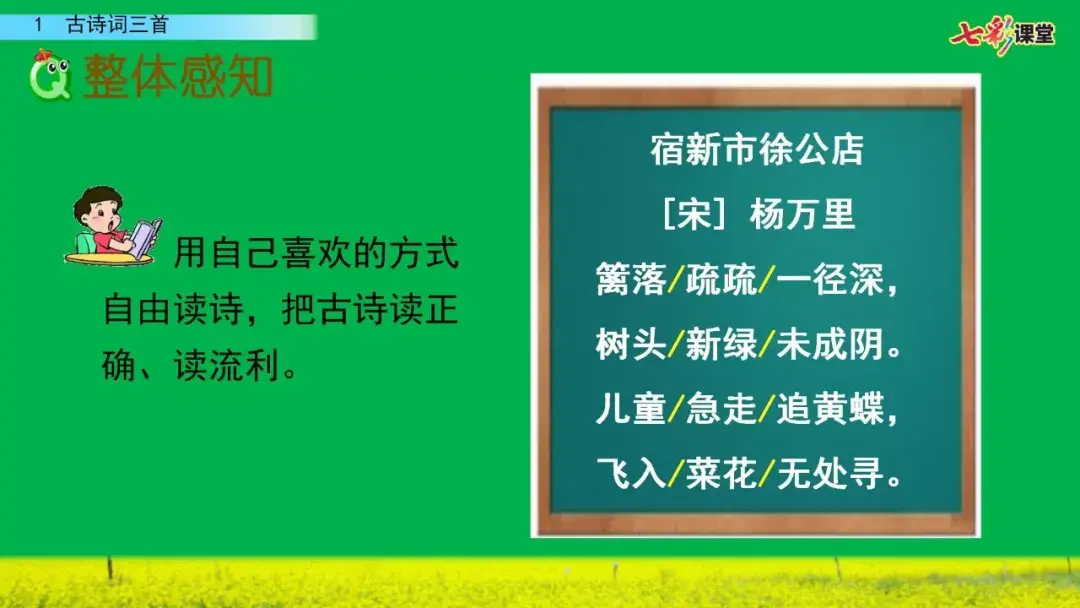 《宿新市徐公店》描写了清新美丽田园春光和儿童在菜花地边追逐黄蝶的生动画面。诗篇洋溢着浓烈的乡村生活情趣,表达了诗人对美丽田园春色的赞美和对乡村儿童的喜爱以脏话对乡村生活的向往之情。