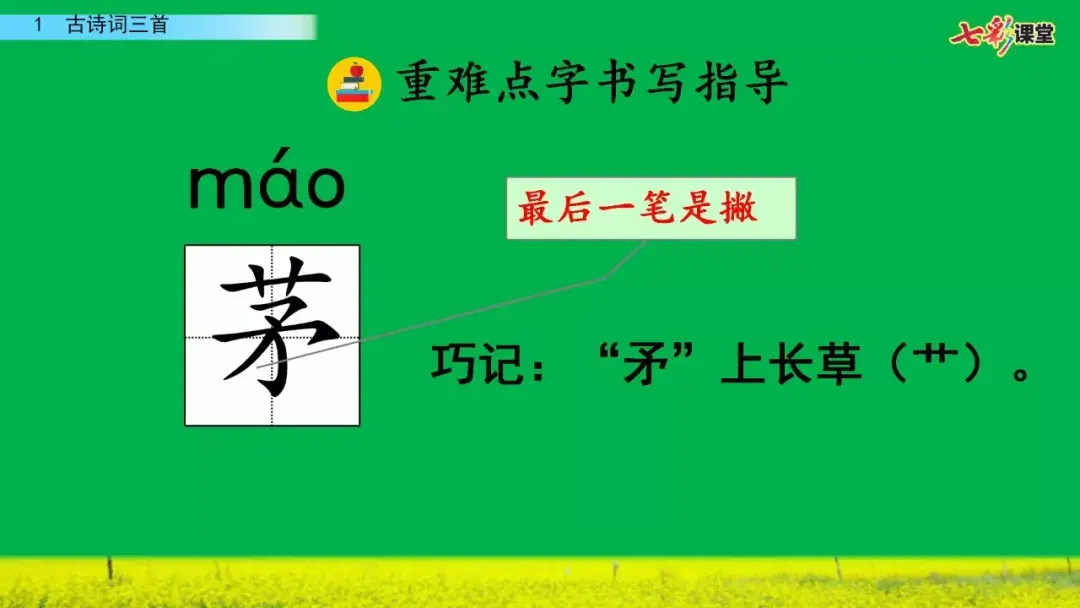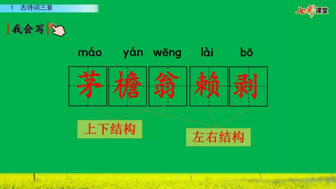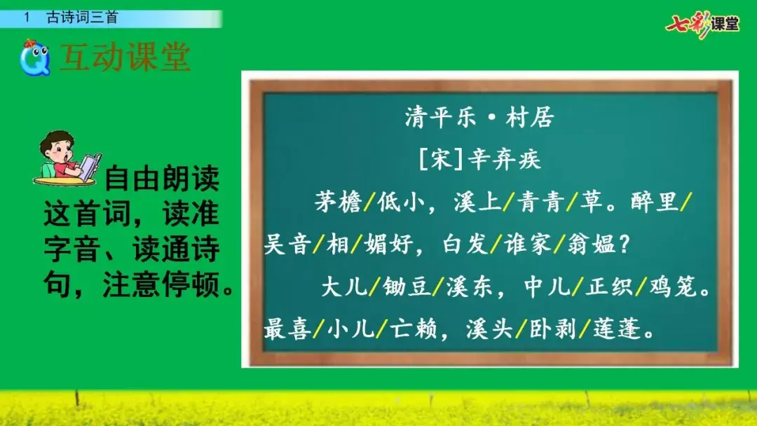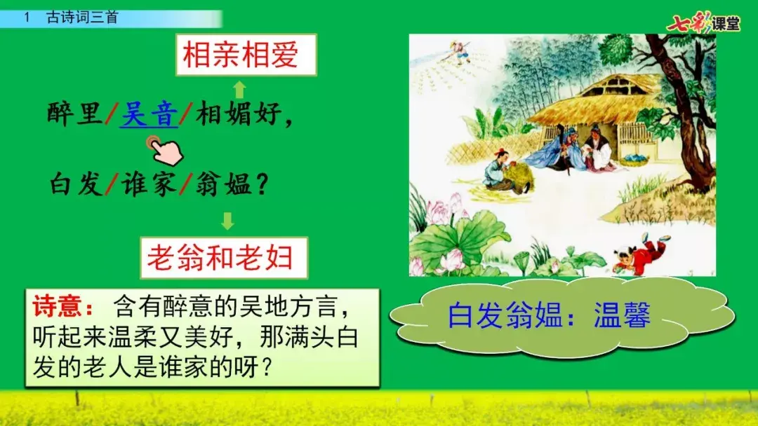 茅檐/低小,溪上/青青/草。醉里/吴音/相/媚好,白发/谁家/翁媪?