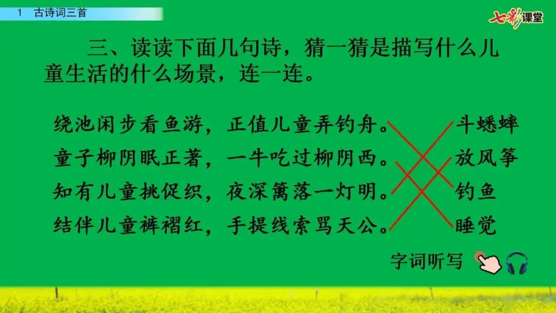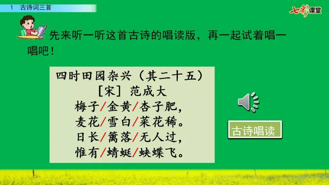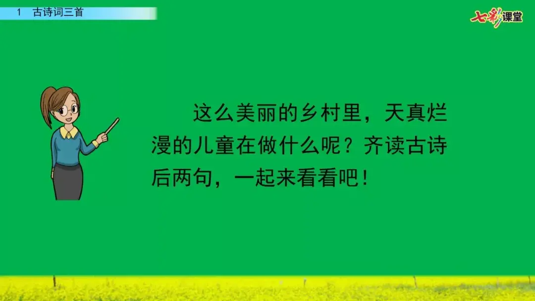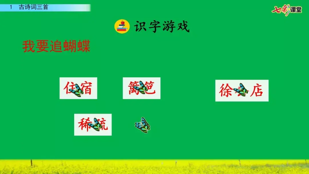 1、儿童急走追黄碟,飞入菜花无处寻。
