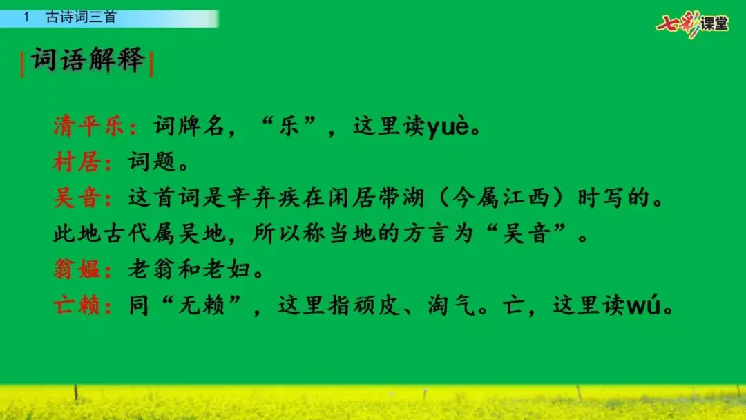 ②吴音:这首词是辛弃疾在江西饶州闲居时写的。饶州,古代属于吴地,所以称当地的方言为“吴音”。
