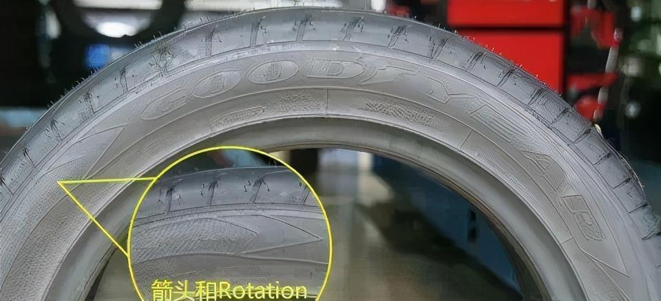 还有一点需要注意的是:轮胎有的是单导向的,在更换轮胎时是需要技师注意的,箭头指向的方向是轮胎向前轮动的方向,上反了,不但花纹磨损快,而且大大减小使用寿命。