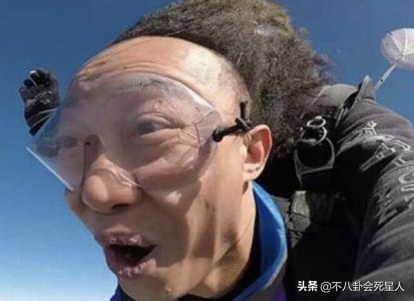 也不怪网友们调侃,在跳伞视频中,陈奕迅的发际线已经直冲头顶了。