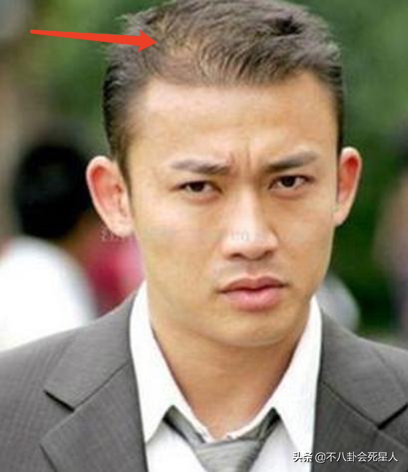 当时他正在拍摄某下水戏,头发被打湿之后,直接现出了“原形”,“M”字的发际线后移。