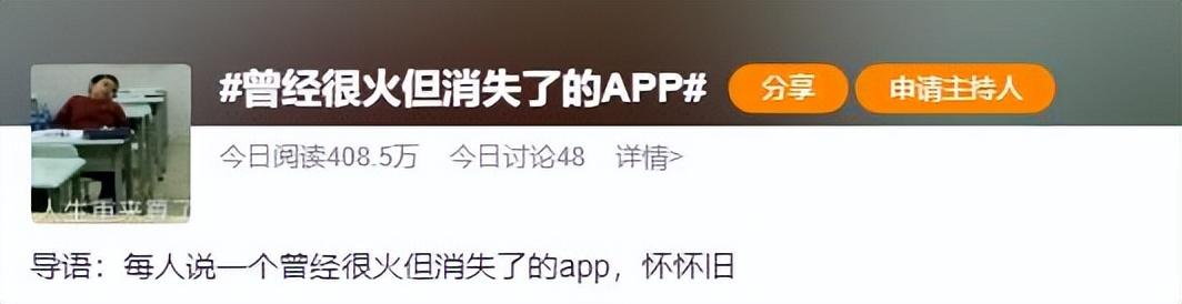 前几天,微博热搜上出现#曾经很火但已经消失的App#词条。