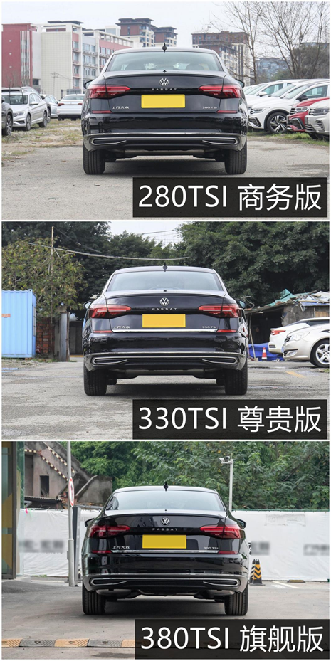 尾部的话也是一样,没有太大差异。如果足够细心的话,可以发现280TSI两款车型及330TSI精英版在尾箱门上并没有镀铬饰条,其它车型均有一根镀铬饰条。并且330TSI尊贵版、380TSI尊贵版及380TSI旗舰版还配备有感应后备箱功能,支持位置记忆。