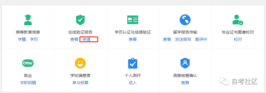④查询到毕业信息后,返回上一页面,点击选择“ 在线验证报告 ”—“ 申请 ”。
